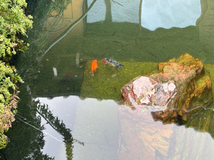 すぐダメになっちゃうかなーと思ったのですが、金魚にしては広い池でのびの